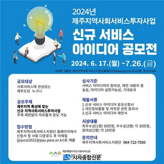 ¿ì¼ö ¾ÆÀ̵ð¾î¸¦ ¼±Á¤ÇÏ¿© ¿À´Â 8¿ù 9ÀÏ °á°ú¹ßÇ¥, 8¿ù 29ÀÏ Á¦ÁÖÁö¿ª»çȸ¼ºñ½º ¹ßÀüÆ÷·³ Çà»ç Áß ½Ã»óÇÒ °èȹÀÌ´Ù. °ø¸ðÀü °ü·Ã ÀÚ¼¼ÇÑ ³»¿ëÀº Á¦ÁÖÁö¿ª»çȸ¼ºñ½ºÁö¿ø´Ü(064-722-7053)À¸·Î ¹®ÀÇÇÏ¸é µÈ´Ù.