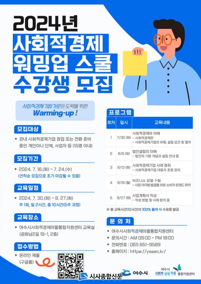 | ¿©¼ö½Ã, ¡®2024³â »çȸÀû°æÁ¦ ¿ö¹Ö¾÷ ½ºÄ𡯠¼ö°»ý ¸ðÁý »çȸÀû°æÁ¦±â¾÷ â¾÷ ¹× Àüȯ ±³À°¡¦¼±Âø¼ø 15¸í ¸ðÁý Áß
