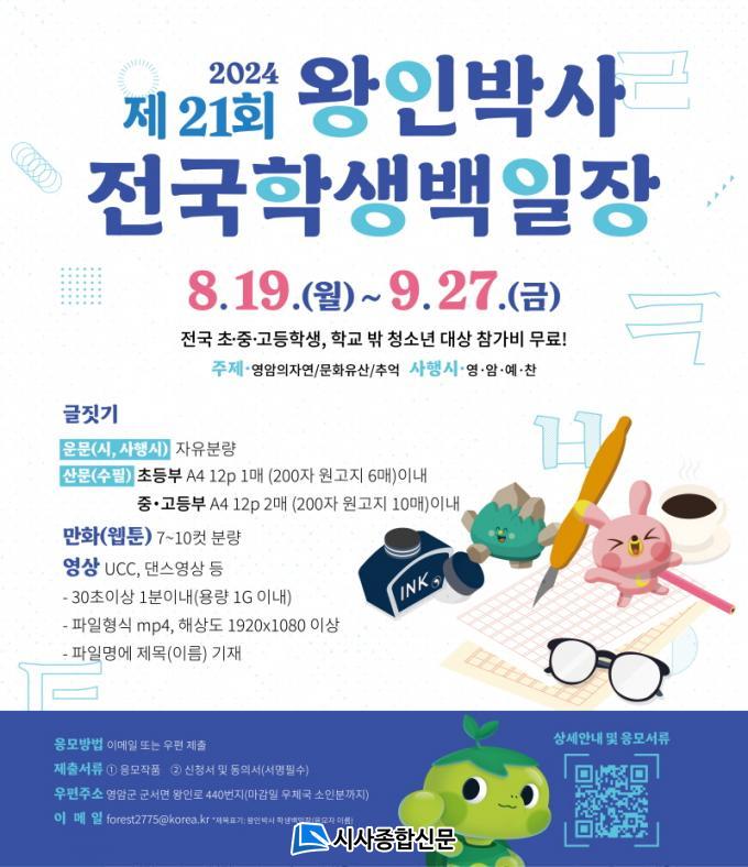 ¿ÕÀιڻç Àü±¹Çлý¹éÀÏÀåÀº Àü±¹ ÃÊ¡¤Áß¡¤°íµîÇлý°ú Çб³¹Ûû¼Ò³â ´©±¸³ª ¹«·á·Î Âü°¡ÇÒ ¼ö ÀÖ´Ù. ¹éÀÏÀå ÁÖÁ¦´Â ¿µ¾ÏÀÇ ÀÚ¿¬¡¤¹®ÈÀ¯»ê¡¤Ãß¾ïÀ̰í, ±ÛÁþ±â¡¤¸¸È¡¤¿µ»ó 3°³ ºÎ¹®¿¡¼ ÀÛǰÀ» ¸ðÁýÇÑ´Ù.