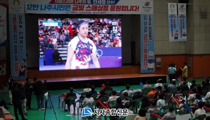| ³ªÁֽô 5ÀÏ ³ªÁÖÁ¾ÇÕ½ºÆ÷Ã÷ÆÄÅ© ´Ù¸ñÀûüÀ°°ü¿¡¼ ³ªÁÖ Ãâ½Å ¹èµå¹ÎÅÏ ±¹°¡´ëÇ¥ ¾È¼¼¿µ ¼±¼öÀÇ ÆÄ¸®¿Ã¸²ÇÈ ¿©ÀÚ ´Ü½Ä °á½ÂÀü ÀÀ¿øÀüÀ» °¡Á³´Ù. ÀÀ¿øÀü¿£ À±º´Å ½ÃÀå°ú ½Ã¹Î 300¿©¸íÀÌ Âü¼®ÇØ ¾È ¼±¼öÀÇ ¿Ã¸²ÇÈ Ã¹ ±Ý¸Þ´Þ, ±×·£µå½½·¥ ´Þ¼ºÀ̶ó´Â ȯÈñÀÇ ¼ø°£À» ÇÔ²²Çß´Ù. (»çÁøÁ¦°ø-³ªÁÖ½Ã) |