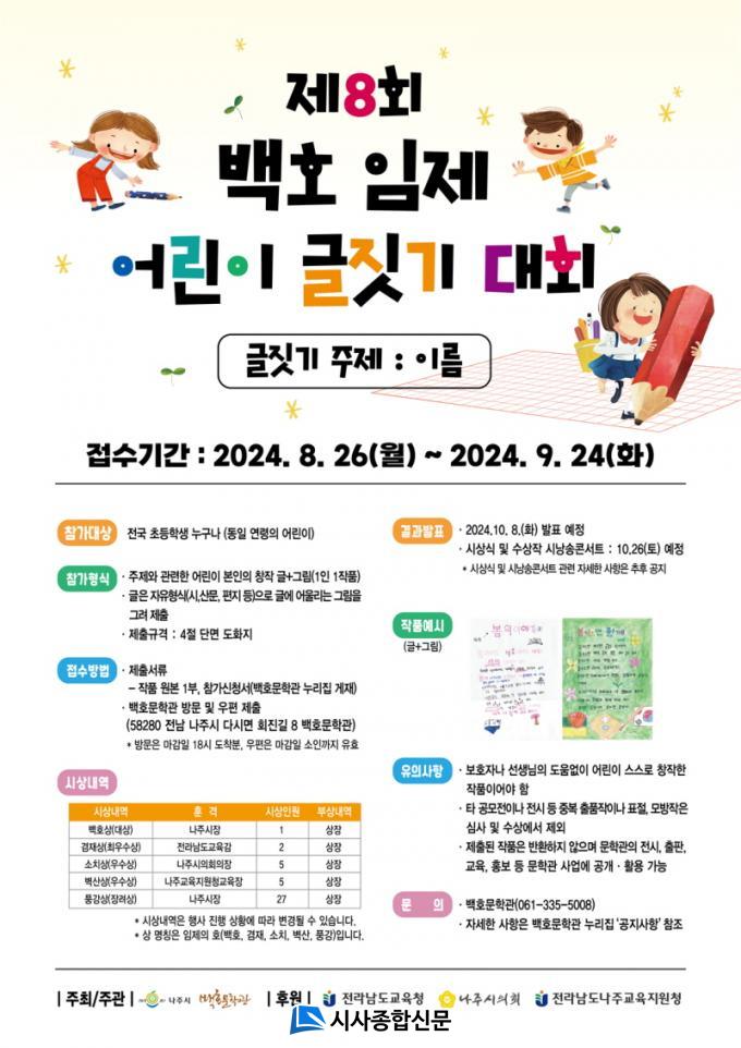 ³ªÁֽà ¹éÈ£¹®ÇаüÀÌ Àü±¹ ¾î¸°ÀÌ ´ë»óÀ¸·Î Á¦8ȸ ¹éÈ£ ÀÓÁ¦ ¾î¸°ÀÌ ±ÛÁþ±â ´ëȸ¸¦ °³ÃÖÇÑ´Ù°í 22ÀÏ ¹àÇû´Ù.