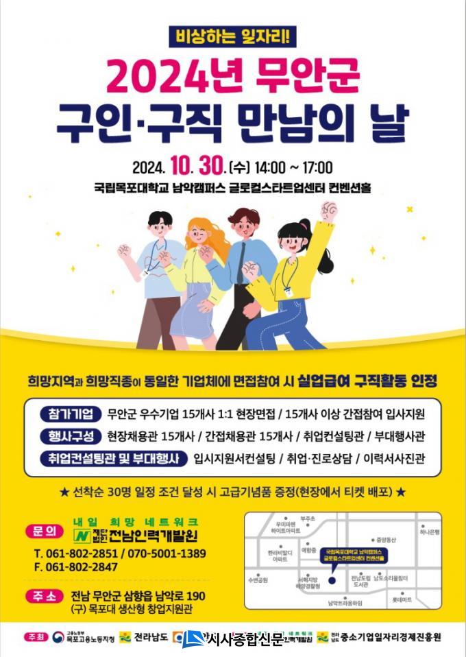¡®ºñ»óÇÏ´Â ÀÏÀÚ¸®¡¯¶ó´Â ½½·Î°ÇÀ¸·Î, ¹«¾È±º°ú °í¿ë³ëµ¿ºÎ ¸ñÆ÷Áöû, Àü¶ó³²µµ°¡ ÁÖÃÖÇϰí, Àü³²Àη°³¹ß¿ø, Àü³²Áß¼Ò±â¾÷ÀÏÀÚ¸®°æÁ¦ÁøÈï¿øÀÌ ÁÖ°üÇÏ´Â À̹ø Çà»ç´Â ±â¾÷ü-±¸Á÷ÀÚ °£ ¸ÅĪÀ» ÅëÇØ ´Ù¾çÇÑ Á÷Á¾¿¡ Ãë¾÷ ±âȸ¸¦ Á¦°øÇÏ´Â ÀåÀÌ µÉ Àü¸ÁÀÌ´Ù.