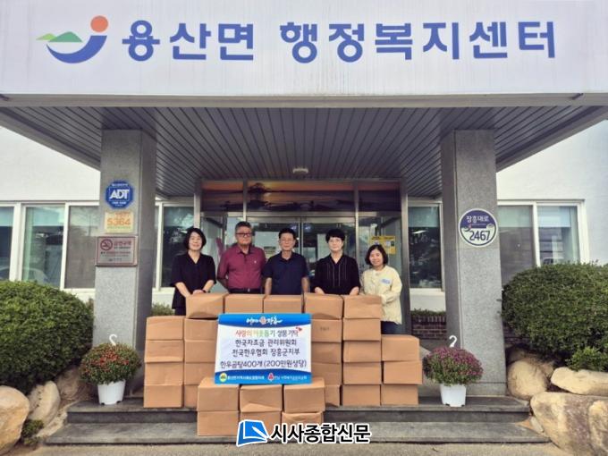[½Ã»çÁ¾ÇսŹ® = ¿À½ÂÅà ±âÀÚ] Àü±¹ÇÑ¿ìÇùȸ ÀåÈﱺÁöºÎ(ÁöºÎÀå Á¤¿¬½Â)´Â 13ÀÏ 200¸¸¿ø »ó´çÀÇ ÇÑ¿ì°õÅÁ 400°³¸¦ ¿ë»ê¸é Áö¿ª»çȸº¸ÀåÇùÀÇü(°øµ¿À§¿øÀå ¹éâ¼±, °íÀç±¹)¿¡ ±âŹÇß´Ù.