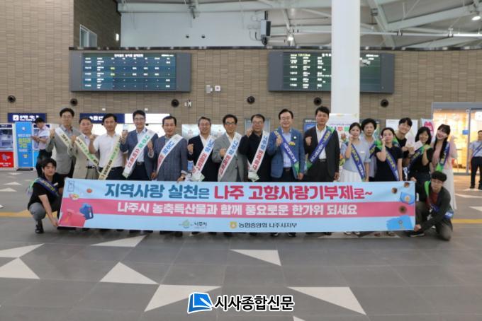 À̳¯ À±º´Å ³ªÁÖ½ÃÀå°ú ³óÇùÁß¾Óȸ ³ªÁÖ½ÃÁöºÎ ½Å°æÈÆ ÁöºÎÀåÀ» ºñ·ÔÇÑ Áö¿ª ³óÇù °ü°èÀÚµéÀÌ Âü¼®ÇØ ³ªÁÖ ½Ò°ú ¹èÁóÀÌ ´ã±ä ¼±¹° ²Ù·¯¹Ì¸¦ ±Í¼º°´µé¿¡°Ô ³ª´²ÁÖ¸é¼ °íÇâ»ç¶û±âºÎÁ¦ÀÇ ÃëÁö¿Í ÇýÅÃÀ» ¾Ë·È´Ù.