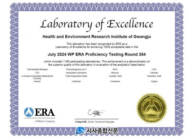 [½Ã»çÁ¾ÇսŹ® = ¿À½ÂÅà ±âÀÚ] ±¤ÁÖ±¤¿ª½Ãº¸°Çȯ°æ¿¬±¸¿øÀÌ ¹Ì±¹È¯°æÀÚ¿øÇùȸ(ERA)ÀÇ ¼öÁú ¹× Åä¾çºÐ¾ß ±¹Á¦¼÷·Ãµµ Æò°¡¿¡¼ ¡®ÃÖ¿ì¼ö ºÐ¼®±â°ü¡¯ ±¹Á¦ÀÎÁõÀ» 9³â ¿¬¼Ó ȹµæÇß´Ù.