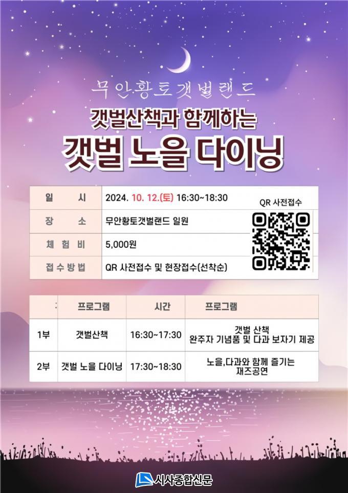 Çà»ç Âü¿©´Â ¹«¾ÈȲÅä°¹¹ú·£µå ȨÆäÀÌÁö(https://getbol.muan.go.kr)¿¡¼ »çÀü ¿¹¾àÀÌ °¡´ÉÇϸç, ÇöÀå¿¡¼µµ ¼±Âø¼øÀ¸·Î Á¢¼öÇÒ ¼ö ÀÖ´Ù.