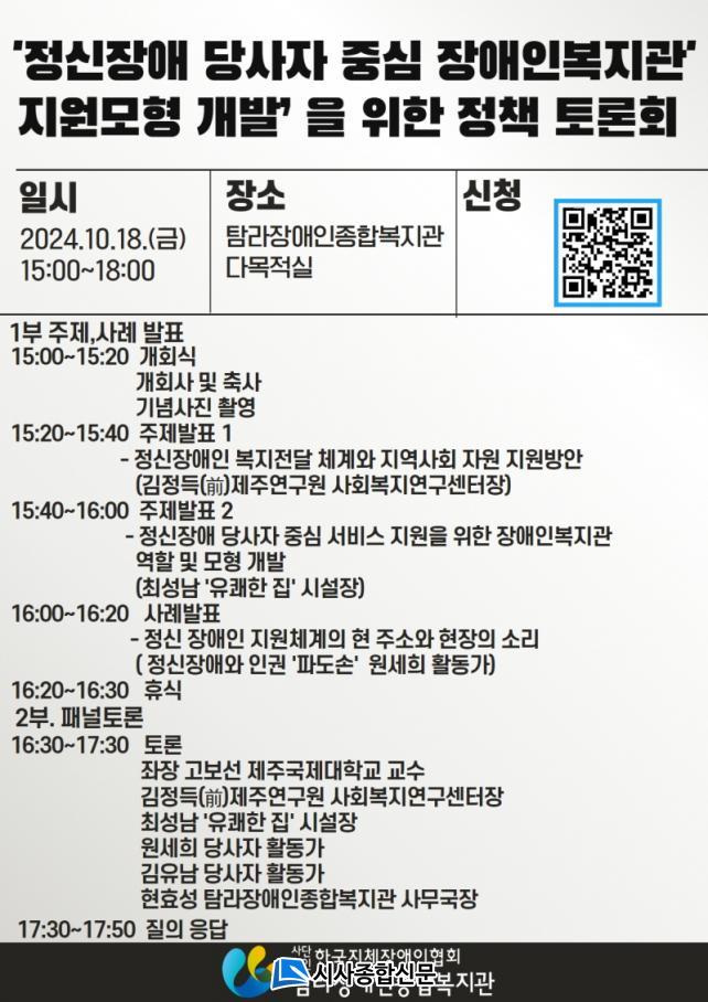 À̹ø Åä·Ðȸ´Â¡®Á¤½ÅÀå¾Ö ´ç»çÀÚ Á᫐ ¼ºñ½º Áö¿øÀ» À§ÇÑ Àå¾ÖÀκ¹Áö°ü ¿ªÇÒ ¹× ¸ðÇü °³¹ß¡¯À» ÁÖÁ¦·Î ¡®Á¤½ÅÀå¾ÖÀÎ º¹Áö Àü´Þü°è¿Í Áö¿ª»çȸ ÀÚ¿ø Áö¿ø ¹æ¾È¡¯, ¡®Á¤½ÅÀå¾ÖÀÎ Áö¿øÃ¼°èÀÇ Çö¾È¡¯À» ³íÀÇÇϰí ÀÌ¿¡ ±â¹ÝÇÑ Á¤Ã¥ÀÇ °ø·Ðȸ¦ ÃËÁøÇÒ ¿¹Á¤ÀÌ´Ù.