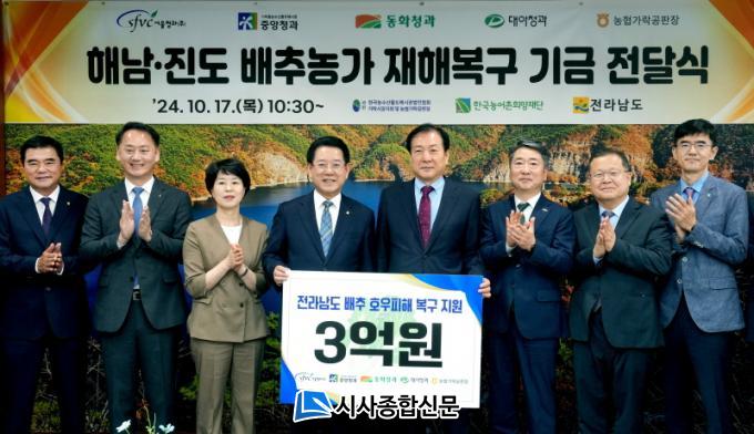 À̳¯ Àü´Þ½Ä¿¡´Â ±è¿µ·Ï Àü³²µµÁö»ç¿Í ±ÇÀåÈñ ÁöȸÀåÀ» Æ÷ÇÔÇÑ 4°³ ȸ¿ø»ç ´ëÇ¥, ÇØ³²ºÎ±º¼ö, ÁøµµºÎ±º¼ö, ¹ÚÁ¤¹® »êÀ̳óÇù Á¶ÇÕÀå µîÀÌ Âü¼®Çß´Ù.