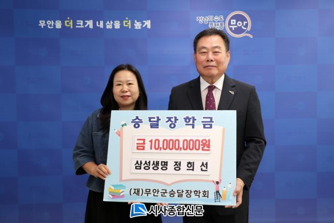 [½Ã»çÁ¾ÇսŹ® = ¿À½ÂÅà ±âÀÚ] ¹«¾È±º(±º¼ö ±è»ê)Àº Áö³ 25ÀÏ »ï¼º»ý¸í Á¤Èñ¼± ¼³°è»ç°¡ Áö¿ª ÀÎÀç ¾ç¼ºÀ» À§ÇØ ÀåÇÐ±Ý 1,000¸¸¿øÀ» ¹«¾È±º ½Â´ÞÀåÇÐȸ¿¡ ±âŹÇß´Ù°í ¹àÇû´Ù.