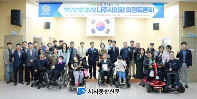 Åä·Ðȸ¿¡´Â ÀÌÀç³² ÀÇÀåÀ» ºñ·ÔÇÑ ³ªÁÖ½ÃÀÇȸ ÀÇ¿øµé°ú Àü°æÃ¶ »ç´Ü¹ýÀÎ SGC¼ÛÆÄÁö¿øÁÖÅà ¼¾ÅÍÀå(ÀÌÇÏ ¼¾ÅÍÀå), ¹èÇö ±¤ÁÖÀå¾ÖÀÎÀÚ¸³»ýȰ¼¾ÅÍ »ç¹«±¹Àå(ÀÌÇÏ »ç¹«±¹Àå), À¯¸íÇØ Çѱ¹Àå¾ÖÀΰ³¹ß¿ø ÆÀÀå(ÀÌÇÏ ÆÀÀå)°ú Àå¾ÖÀÎ º¹ÁöºÐ¾ß °ü°èÀÚ ¹× Àå¾ÖÀÎ °³Àο¹»êÁ¦µµ¿¡ °ü½ÉÀÌ ÀÖ´Â ½Ã¹Î µî ¾à 70¿©¸íÀÌ Âü¼®ÇØ ´Ù¾çÇÑ ÀǰßÀ» Á¦½ÃÇÏ¿´´Ù.