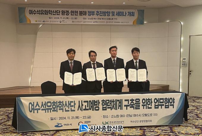 À̳¯ Çù¾à½Ä¿¡ ÃÖÁ¤±â ¿©¼ö½Ã ºÎ½ÃÀå°ú À±ÁØÇå ÈÇй°Áú¾ÈÀü¿ø »ç°í¿¹¹æ½É»ç1°úÀå, ¼Û¹Îö Çѱ¹±¹ÅäÁ¤º¸°ø»ç °ø°£Á¤º¸»ç¾÷óÀå, ¿À¿µÃ¶ ¿©¼ö»ê´Ü°øÀåÀåÇùÀÇȸÀåÀÌ Âü¼®ÇØ »çÀü ¼¸íÇÑ Çù¾à¼¸¦ »óÈ£ ±³È¯Çß´Ù.