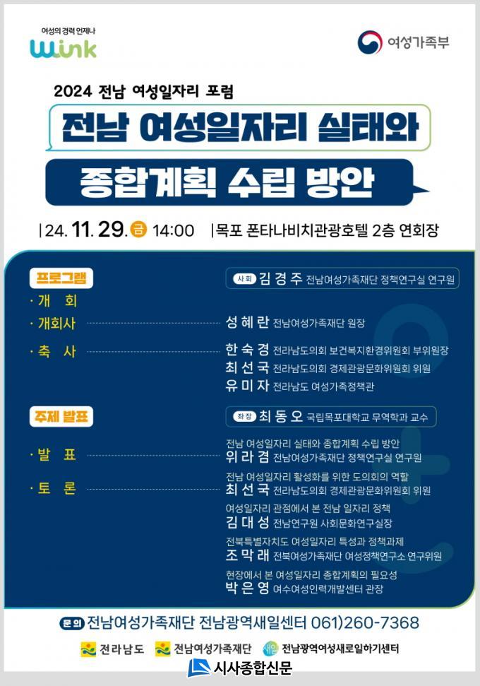 À̹ø Æ÷·³¿¡¼´Â Àü³²¿©¼º°¡Á·Àç´Ü À§¶ó°â ¿¬±¸¿øÀÌ¡®2024³â Àü³² ¿©¼ºÀÏÀÚ¸® Á¾ÇÕ°èȹ ¼ö¸³ ¹æ¾È¡¯À» ¹ßÇ¥Çϰí, ÃÖµ¿¿À ¸ñÆ÷´ëÇб³ ¹«¿ªÇаú ±³¼ö°¡ ÁÂÀåÀ» ¸Ã¾Æ Àü¹®°¡ ÁöÁ¤Åä·ÐÀÌ ÁøÇàµÈ´Ù.
