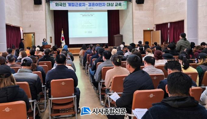[½Ã»çÁ¾ÇսŹ® = ¿À½ÂÅà ±âÀÚ] ³ªÁÖ½Ã(½ÃÀå À±º´ÅÂ)´Â ³ó¾÷±â¼ú¼¾ÅÍ¿¡¼ ¿Ü±¹ÀÎ °èÀý±Ù·ÎÀÚ µµÀÔ È®´ë¿Í ¾ÈÁ¤ÀûÀÎ ±Ù·Î¸¦ À§ÇØ °áÈ¥À̹ÎÀÚ 200¿©¸íÀ» ´ë»óÀ¸·Î ÀÔ±¹ ÀýÂ÷ ¾È³» ±³À°À» Çß´Ù°í 17ÀÏ ¹àÇû´Ù.
