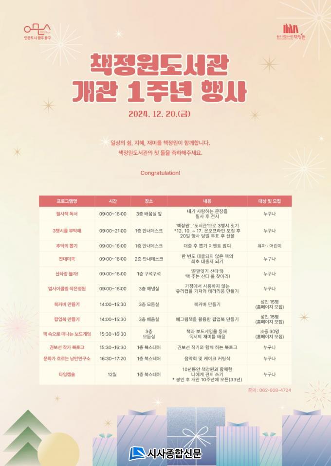 °³°ü 1ÁÖ³â Çà»ç´Â ºÏ ÅäÅ©, À½¾Çȸ, µ¶¼ À̺¥Æ® µî Áֹεé°ú ÇÔ²² ÃàÇÏÇϸç Áñ±â´Â ÀÚ¸®·Î ²Ù·ÁÁú ¿¹Á¤ÀÌ´Ù.