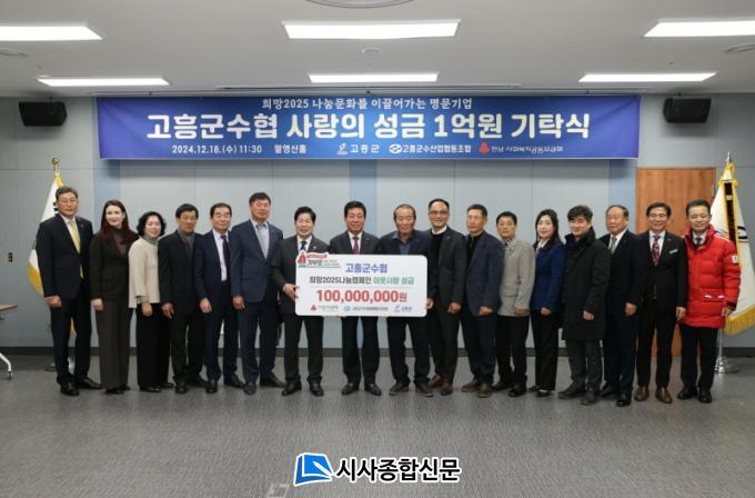 °íÈﱺ ¼ö»ê¾÷Çùµ¿Á¶ÇÕ°ú (»ç)Çѱ¹¿©¼º¾î¾÷Àο¬ÇÕȸ °íÈﱺ¼öÇùºÐȸ´Â °¢°¢ 1¾ï ¿ø°ú 100¸¸ ¿øÀÇ ¼º±ÝÀ» ±âŹÇßÀ¸¸ç, Áö³ÇØ ¡®°íÈï ³ª´®¸®´õ 1È£¡¯¿¡ °¡ÀÔÇÑ °ø¿µ¹Î ±º¼ö´Â ¼¼ ¹øÂ° ±âºÎ¸¦ ÅëÇØ Áö¿ª»çȸ ³ª´®¹®È¸¦ ¼±µµÇÏ´Â ³ª´®¸®´õ·Î¼ÀÇ Çຸ¸¦ À̾´Ù.