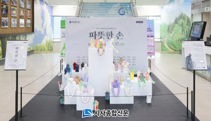 À̹ø Àü½ÃÀÇ Å׸¶ÀÎ ¡®µû¶æÇÑ ¼Õ¡¯Àº ÃÖÆò°ï ÀÛ°¡ÀÇ ÀÛǰÀ» ¸ðƼºê·Î ´ë³ª¹«¸¦ ÁÖ ¼ÒÀç·Î °øµ¿Ã¼ÀÇ ÀÇ¹Ì¿Í ¿À¿ù Á¤½ÅÀÇ °¡Ä¡¸¦ ¿¹¼ú·Î Ç¥ÇöÇÑ °ø°øÁ¶Çü¹°ÀÌ´Ù. ÃÖ ÀÛ°¡°¡ ±¤ÁÖ ¿ª»ç¸¦ ±â¾ïÇϰí Èñ»ýµÈ ¿À¿ù ¿µ·Éµé²² À§·Î¿Í Á¸°æÀÇ ¸¶À½À» ´ã¾Æ Á¦ÀÛÇßÀ¸¸ç, ÀÛǰÀº ÇöÀç ¹Ì·Î¼¾ÅÍ ³» ¹Ì·Î °¡µç¿¡ ¼³Ä¡µÅ ÀÖ´Ù.