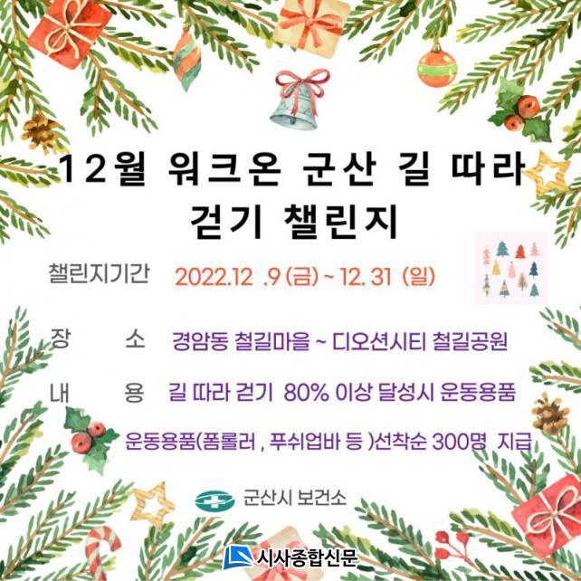 ÇÑ ÇØ¸¦ ¸¶¹«¸®ÇÏ´Â 12¿ù 縰Áö´Â ¿À´Â 9ÀϺÎÅÍ 31ÀϱîÁö ·¹Æ®·Î °¨¼º°ú üÇèÀÌ ÀÖ´Â ±º»ê °æ¾Ïµ¿ ö±æ¸¶À»¿¡¼ºÎÅÍ µð¿À¼Ç ö±æ°ø¿ø±îÁö ±æµû¶ó °È±â 縰Áö¸¦ ¿î¿µÇÒ ¿¹Á¤ÀÌ¸ç ¼±Âø¼ø 300¸íÀ» ´ë»óÀ¸·Î Áüº¼ ¹× Æû·Ñ·¯ µî ´Ù¾çÇÑ ¼±¹°À» Á¦°øÇÒ ¿¹Á¤ÀÌ´Ù.