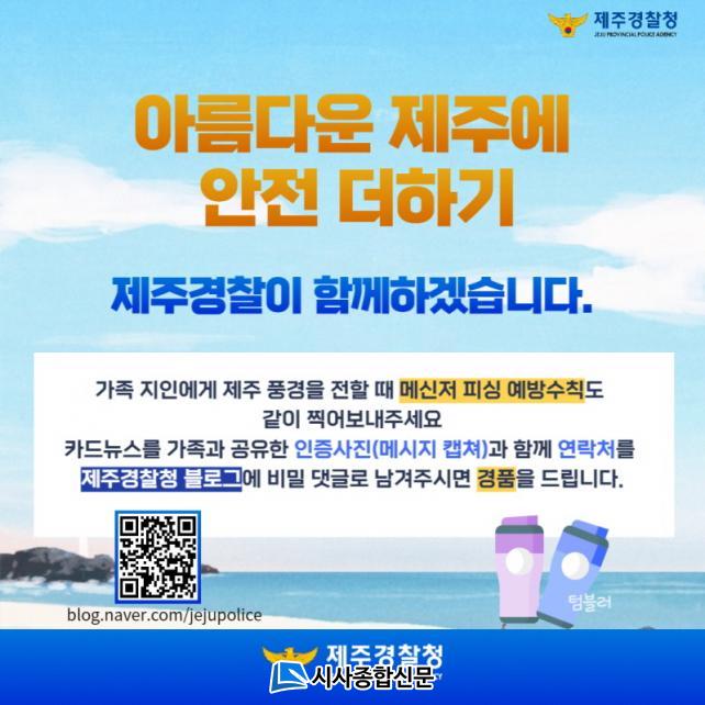 Á¦ÁÖ°æÂûû »çÀ̹ö¹üÁ˼ö»ç´ë °ü°èÀÚ´Â, ¿¬°£ ³»±¹ÀÎ ¹æ¹®°´ÀÌ Ãµ ¸¸¸íÀÌ ³Ñ´Â Á¦ÁÖ´Â µµ¹ÎÀº ¹°·Ð Àü ±¹¹ÎÀ» ´ë»óÀ¸·Î »çÀ̹ö¹üÁË ¿¹¹æÀÇ Á߿伺À» ¾Ë¸± ¼ö ÀÖ´Â ÁÁÀº Àå¼Ò¡±¶ó¸é¼, ¡°Á¦ÁÖ¸¦ ã´Â ºÐµéÀÌ Á¦ÁÖ¿©ÇàÀ» °Ë»öÇϰųª Á¦ÁÖ Ç³°æÀ» ÀüÇÒ ¶§ ¿¹¹æ¼öÄ¢µµ ³Î¸® °øÀ¯ÇÒ ¼ö Àֱ⸦ Èñ¸ÁÇÑ´Ù¡±°í ¹àÇû´Ù.