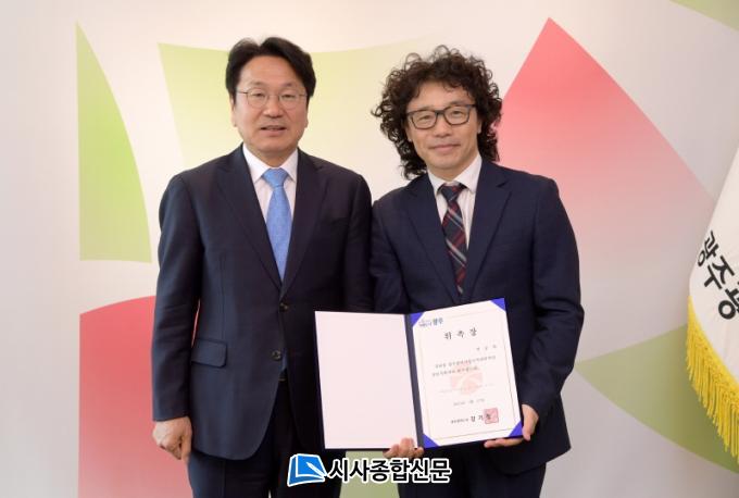 °±âÁ¤ ±¤ÁÖ±¤¿ª½ÃÀåÀº 17ÀÏ ½Ãû Á¢°ß½Ç¿¡¼ ½Ã¸³±¹¾Ç°üÇö¾Ç´Ü »óÀÓÁöÈÖÀÚ¿¡ ¼±ÀÓµÈ ¹Ú½ÂÈñ ÁöÈÖÀÚ¿¡°Ô À§ÃËÀåÀ» ¼ö¿©Çß´Ù.