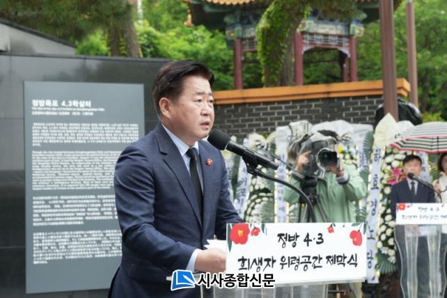 ÇÑÆí, ¿À¿µÈÆ Áö»ç´Â Àλ縻À» ÅëÇØ Á¦ÁÖ4¡¤3 À¯ÀûÁö Á¤ºñ¸¦ ÅëÇØ 4¡¤3ÀÇ ¿ª»ç¸¦ º¸Á¸¡¤°è½ÂÇϰí 4¡¤3Á¤½ÅÀÇ ¼¼°èȸ¦ À̷ﳪ°¡°Ú´Ù´Â ÀÇÁö¸¦ ÇÇ·ÂÇß´Ù. ¿À¿µÈÆ Áö»ç´Â ¡°Á¦ÁÖ4¡¤3ÀÇ ºñ±ØÀº ¼¶ °÷°÷ ¾îµð¿¡³ª Á¸ÀçÇÏÁö¸¸, À̸¦ ±â¾ïÇϰí Ã߸ðÇÏ´Â °ø°£Àº ¾ÆÁ÷ ºÎÁ·ÇØ ¸¶À½ÀÌ Âü ¾ÆÆÍ´Ù¡±¸ç ¡°¿À´Ã Á¦¸·½ÄÀ» ÅëÇØ Á¤¹æÆøÆ÷¿¡ ¼¸° ½½Çİú ¾ÆÇÄÀÌ Á¶±ÝÀÌ¶óµµ À§·Î°¡ µÇ±â¸¦ ±â¿øÇÑ´Ù¡±°í ¸»Çß´Ù. ÀÌ¾î ¡°±¹°¡Æø·ÂÀ¸·Î 3¸¸¿© ¸íÀÌ Èñ»ýµÇ´Â ÂüȤÇÑ ºñ±ØÀ» °Þ¾úÁö¸¸ Èñ»ýÀÚÀÇ À̾߱â¿Í ¿ª»çÀÇ Áø½ÇÀ» ÀüÇϱâ À§ÇØ ¾Ö½á¿Â Á¦ÁÖµµ¹ÎÀÇ Àú·ÂÀ» ¹Ï´Â´Ù¡±¸ç ¡°Á¦ÁÖµµ °÷°÷¿¡ ÆÛÁ®ÀÖ´Â À¯ÀûÁö¸¦ Àß Á¤ºñÇØ ÈļյéÀÌ 4¡¤3ÀÇ ¿ª»ç¸¦ ÀØÁö ¾Êµµ·Ï ¸ðµç ³ë·ÂÀ» ´ÙÇϰڴ١±°í µ¡ºÙ¿´´Ù. ƯÈ÷ ¡°Á¦ÁÖµµ¹ÎÀÇ Èñ»ý°ú Çå½ÅÀ¸·Î ¸¸µé¾îÁø 4¡¤3Á¤½Å°ú °¡Ä¡°¡ ¼¼°è Æòȸ𵨷ΠÀÚ¸®Àâµµ·Ï ÃÖ¼±À» ´ÙÇϰڴ١±°í °Á¶Çß´Ù.