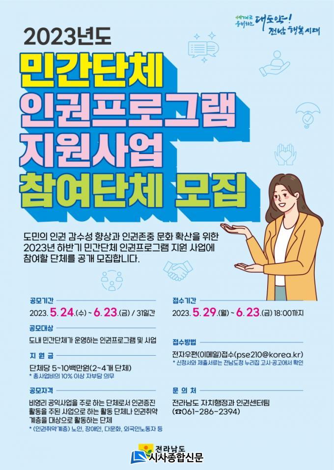 Á¢¼ö ±â°£Àº ¿À´Â 29ÀϺÎÅÍ 6¿ù 23ÀϱîÁö·Î Àü³²µµ ÀÚÄ¡ÇàÁ¤°ú ÀαǼ¾ÅÍÆÀÀ¸·Î ½Åû¼¸¦ Á¦ÃâÇÏ¸é µÈ´Ù. ÀÚ¼¼ÇÑ ³»¿ëÀº Àü³²µµ ´©¸®Áý(www.jeonnam.go.kr) °í½Ã¡¤°ø°í¿¡¼ È®ÀÎÇÒ ¼ö ÀÖ´Ù.