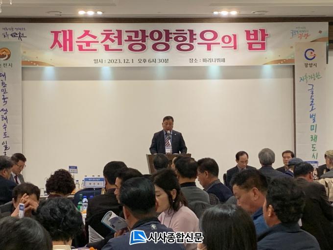 ÀÌÇöÀç »ç¹«±¹ÀåÀÇ »çȸ·Î ÁøÇàµÈ À̳¯ Çà»ç´Â ³ë°ü±Ô ¼øÃµ½ÃÀå, Á¤ÀÎÈ ±¤¾ç½ÃÀåÀ» ºñ·ÔÇØ À̼ø±â 11´ë ȸÀå, ±èº´È£ 13´ë ȸÀå, ±¤¾ç½Ã¹Î ¹× Àç¼øÃµ±¤¾çÇâ¿ìȸ ȸ¿ø µî 300¿© ¸íÀÌ Âü¼®ÇÑ °¡¿îµ¥ ±â³ä½Ä°ú ÈÇÕÀ» ´ÙÁö´Â ¸¸Âù, ÃÊû°¡¼öµéÀÇ ÃàÇϰø¿¬, °íÇâ ¹ßÀü»óÀ» µ¿¿µ»óÀ¸·Î È®ÀÎÇÏ°í ¼·ÎÀÇ ¾ÈºÎ¸¦ ¹°À¸¸é¼ ¿¾ Ãß¾ïÀ» µÇ»õ±â´Â ½Ã°£À» °¡Á³´Ù.