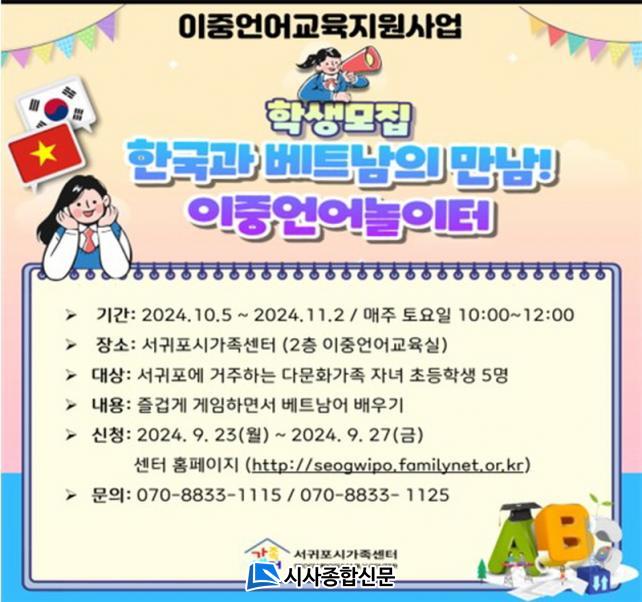 ÇÁ·Î±×·¥ Âü¿©´Â ¼±ÍÆ÷½Ã°¡Á·¼¾ÅÍ È¨ÆäÀÌÁö(https://seogwipo.familynet.or.kr/center/index.do)¿¡¼ ½Åû °¡´ÉÇϸç, ÀÚ¼¼ÇÑ ¹®ÀÇ´Â ¼±ÍÆ÷½Ã°¡Á·¼¾ÅÍ(¢Ï064-762-1141, 732-6482)·Î ÇÏ¸é µÈ´Ù.