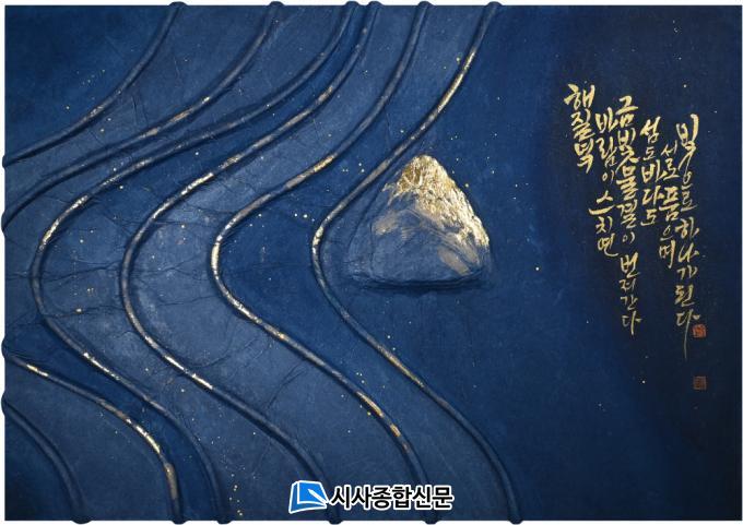 ÀÛǰ Àü¹Ý¿¡´Â ±íÀÌ ÀÖ´Â ÇÑÁö¿Í ±Ý¹Ú, ¸ÔÀÇ ³ó´ãÀÌ ¾î¿ì·¯Áø µ¶Ã¢ÀûÀÎ ±â¹ýÀÌ µ¸º¸ÀδÙ. ¹Ù´Ù¸¦ »ó¡ÇÏ´Â °î¼±ÀÇ È帧°ú ¼¶À» »ó¡ÇÏ´Â ÇüŰ¡ ÇÑ±Û ¼Ã¼·Î ÀÚ¿¬½º·´°Ô À¶ÇյȴÙ. ½ÇÁ¦ È¸È¿Í ¼¿¹, ±×¸®°í Á¶ÇüÀÌ ¸¸³ª´Â ÁöÁ¡¿¡¼ ź»ýÇÏ´Â ¡®¼¶°ú ¹Ù´ÙÀÇ ½Ã(ãÌ)¡¯ °°Àº ÀÛǰµéÀº Àü½ÃÀåÀ» ã´Â À̵鿡°Ô ÇѱÛÀÌ Áö´Ñ ±íÀº »ý¸í·Â°ú ¹ÌÇÐÀû ¾Æ¸§´Ù¿òÀ» ´Ù½Ã±Ý Àϱú¿î´Ù.
