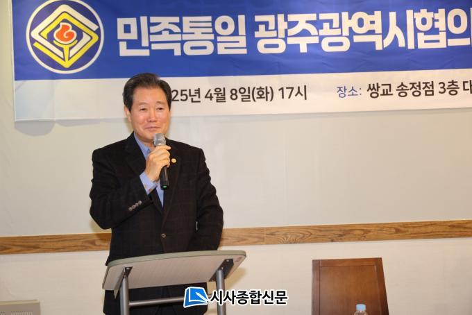 ¿©Çпµ ¹ÎÁ·ÅëÀÏ ±¤ÁÖ±¤¿ª½ÃÇùÀÇȸ ȸÀåÀº Àλ縻À» ÅëÇØ ¡°¹ÎÁ·ÅëÀÏÀº ¼±ÅÃÀÌ ¾Æ´Ï¶ó Çʼö¶ó´Â °Ô ¿ì¸®ÀÇ ÀÔÀåÀ̰í Á¦ °³ÀÎ »ý°¢ÀÌ´Ù¡±¸ç, ¡°ÇöÀç ³²ºÏ °ü°è´Â ´ëȰ¡ ´ÜÀýµÈ »óÅ¿¡¼ ´ë¸³°ú ±äÀ常ÀÌ °íÁ¶µÇ°í ÀÖ¾î ÅëÀϿÀÌ ¼³ ÀÚ¸®°¡ ÁÙ¾îµé°í ÀÖ´Ù¸ç ÀÌÁ¦´Â ´ë¸³Àû °üÁ¡¿¡¼ ¹þ¾î³ª ³²ºÏÀÌ ÆòÈ¿Í ¾Èº¸¸¦ À§ÇÑ ÅëÀÏ ±â¹Ý Á¶¼ºÀÌ ¹«¾ùº¸´Ù Áß¿äÇÏ´Ù¡±°í ¸»Çß´Ù.
