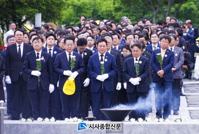 À̳¯ Ãßµµ½ÄÀº ¡®¹ÎÁÖÁÖÀÇ ÃÖÈÄÀÇ º¸·ç´Â ±ú¾îÀÖ´Â ½Ã¹ÎÀÇ Á¶Á÷µÈ ÈûÀÔ´Ï´Ù¡¯¶ó´Â ½½·Î°ÇÀ¸·Î ¾ö¼öµÆ´Ù. ¿ì¿ø½Ä ±¹È¸ÀÇÀå Ãßµµ»ç, ½Ã¹ÎÇÕâ´ÜÀÇ Ãß¸ð °ø¿¬, Â÷¼º¼ö ÀÌ»çÀå Àλ縻 ¼øÀ¸·Î ÁøÇàµÆ´Ù.
