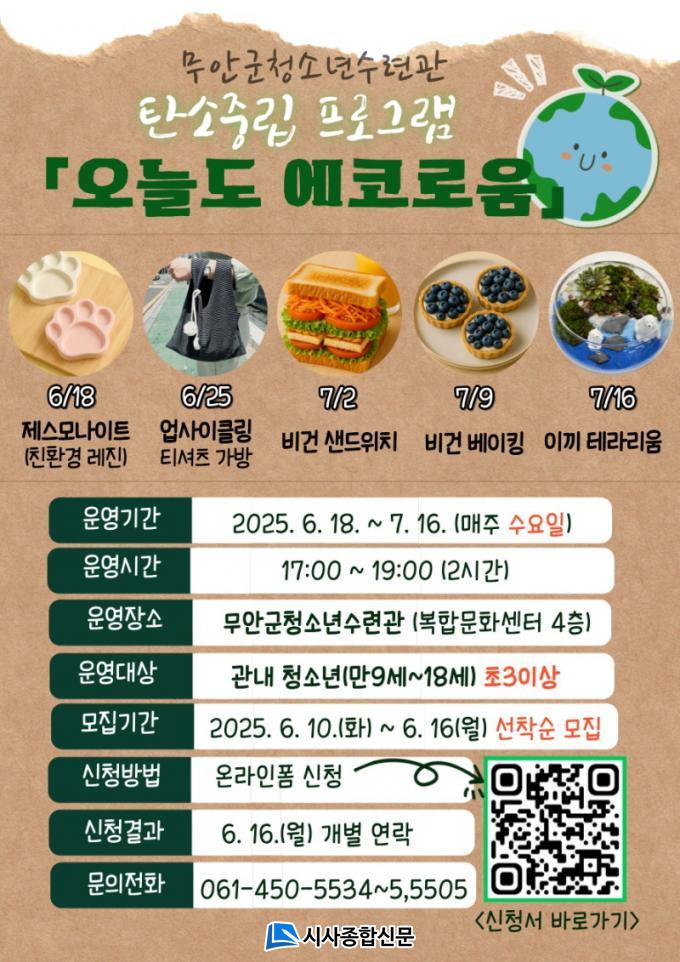 [½Ã»çÁ¾ÇսŹ® = ¿À½ÂÅà ±âÀÚ] ¹«¾È±º(±º¼ö ±è»ê) û¼Ò³â¼ö·Ã°üÀº ȯ°æÀÇ ´ÞÀ» ¸Â¾Æ 6¿ù 18ÀϺÎÅÍ 7¿ù 16ÀϱîÁö ¸ÅÁÖ ¼ö¿äÀÏ ÃÑ 5ȸ¿¡ °ÉÃÄ °ü³» û¼Ò³âÀ» ´ë»óÀ¸·Î ź¼ÒÁ߸³ ÇÁ·Î±×·¥ ¡®¿À´Ãµµ ¿¡Äڷοò¡¯À» ¿î¿µÇÑ´Ù.