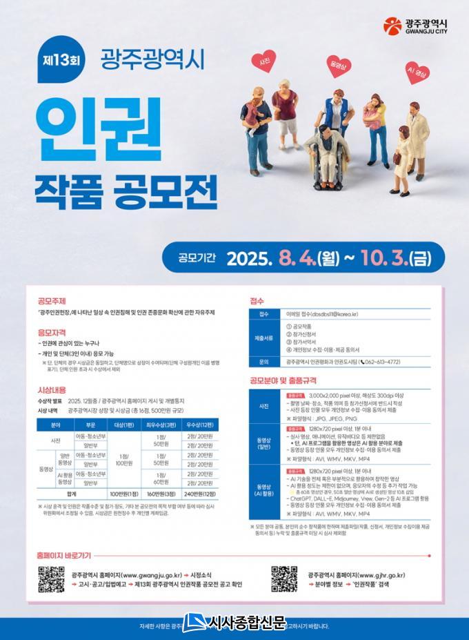 À̹ø °ø¸ðÀüÀº ¡®±¤ÁÖÀαÇÇåÀ塯¿¡ ´ã±ä öÇÐÀ» ¹ÙÅÁÀ¸·Î, ÀÏ»ó ¼Ó ÀαÇÄ§ÇØ »ç·Ê³ª ÀαÇÁ¸Áß ¹®È¸¦ Á¶¸íÇÏ´Â ÀÚÀ¯ ÁÖÁ¦ Çü½ÄÀ¸·Î ÁøÇàµÈ´Ù. °ø¸ð´Â ¡ã»çÁø ¡ãÀÏ¹Ý ¿µ»ó ¡ãÀΰøÁö´É(AI) Ȱ¿ë ¿µ»ó µî 3°³ ºÐ¾ß´Ù.