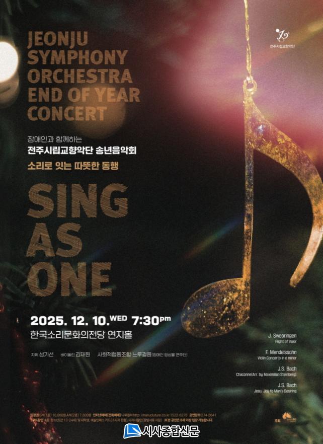 ÀüÁֽø³±³Çâ¾Ç´ÜÀº ¿À´Â 10ÀÏ ¿ÀÈÄ 7½Ã 30ºÐ, Çѱ¹¼Ò¸®¹®ÈÀÇÀü´ç ¿¬ÁöȦ¿¡¼ Àå¾ÖÀΰú ÇÔ²²ÇÏ´Â ¼Û³âÀ½¾Çȸ ¡®¼Ò¸®·Î ÀÕ´Â µû¶æÇÑ µ¿Çà(Sing as One)¡¯À» ¼±º¸ÀδÙ.