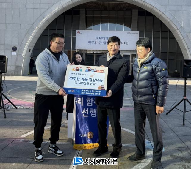 [½Ã»çÁ¾ÇսŹ® = ¿À½ÂÅà ±âÀÚ] ±¹Á¦·ÎŸ¸®3670Áö±¸(ÃÑÀç ±è¼ºÈñ)¿Í ÀçÀüÇùÀÇȸ(ÀÇÀå ¹Ú½Å±Ô)´Â 5ÀÏ ÀüÁÖ½Ãû ³ë¼Û±¤Àå¿¡¼­ ÀüÁÖÁö¿ª 34°³ Ŭ·´ ȸ¿ø ¹× ÀüÁÖ½ÃÁÖ¹ÎÀÚÄ¡ÇùÀÇȸ(ȸÀå °­¹Îö) ȸ¿ø µî 150¸íÀÌ Âü¼®ÇÑ °¡¿îµ¥ °Ü¿ï¸ÂÀÌ ¡®·ÎŸ¸®°¡ ÇÔ²² ¸¸µå´Â µû¶æÇÑ °Ü¿ï, ±èÀå ³ª´®¡¯ Çà»ç¸¦ ÆîÃÆ´Ù.