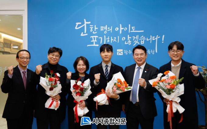 [½Ã»çÁ¾ÇսŹ® = ¿À½ÂÅà ±âÀÚ] ÀÌÁ¤¼± ±¤Áֽñ³À°°¨ÀÌ 9ÀÏ ±¤Áֽñ³À°Ã» ±³À°°¨½Ç¿¡¼ 2026Çг⵵ ¼ö´É½ÃÇè ¸¸Á¡À» ¹ÞÀº ±¤ÁÖ¼¼®°íµîÇб³ ÃÖÀå¿ì Çлý°ú ÇлýÀÇ ºÎ¸ð, Çб³ °ü°èÀÚ µîÀ» ¸¸³ª ÃàÇϸ¦ °Ç³»°í °Ý·ÁÇß´Ù.