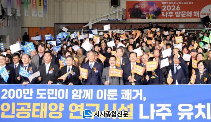 ¡®´ëÇѹα¹ ¿¡³ÊÁö ¼öµµ Àü³² ³ªÁÖ, ÀΰøÅ¾çÀ» ǰ´Ù!¡¯¶ó´Â ½½·Î°Ç ¾Æ·¡ ¿¸° À̳¯ Çà»ç¿¡´Â °À§¿ø Àü³²µµ °æÁ¦ºÎÁö»ç, À±º´Å ³ªÁÖ½ÃÀå, ½ÅÁ¤ÈÆ ±¹È¸ÀÇ¿ø, Áö¿ª ´ëÇС¤»ê¾÷°è¡¤¿¬±¸°è Àλç¿Í À¯Ä¡À§¿øÈ¸ À§¿ø, µµ¹Î µî 900¿© ¸íÀÌ Âü¼®Çß´Ù. À̵éÀº ÀΰøÅÂ¾ç ¿¬±¸½Ã¼³ À¯Ä¡ °¨°ÝÀ» ÇÔ²² ³ª´³´Ù. °¡¼ö ÃàÇϰø¿¬ µîµµ À̾îÁ® Çà»ç ºÐÀ§±â¸¦ ´õ¿í ¶ß°Ì°Ô ´Þ±É´Ù.