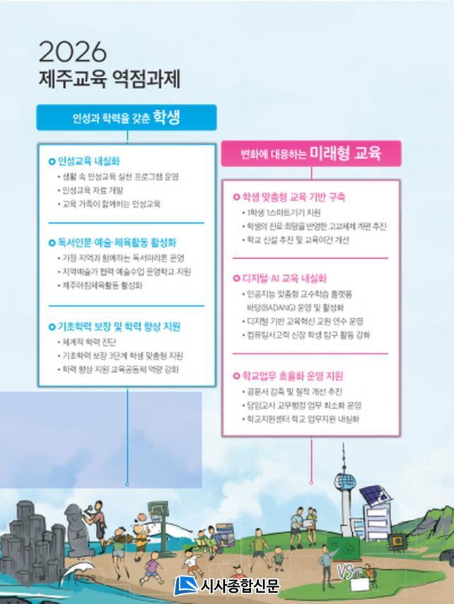 Á¦ÁÖÆ¯º°ÀÚÄ¡µµ±³À°Ã»Àº 19ÀϺÎÅÍ ¡®2026 Á¦ÁÖ±³À°¡¯À» »êÇÏ ±â°ü ¹× Çб³¿¡ ¾È³»ÇÏ¿© Â÷±â Çг⵵ ±³À°°úÁ¤¿¡ ³»½Ç ÀÖ°Ô ¹Ý¿µµÇµµ·Ï Áö¿øÇÒ ¿¹Á¤ÀÌ´Ù.