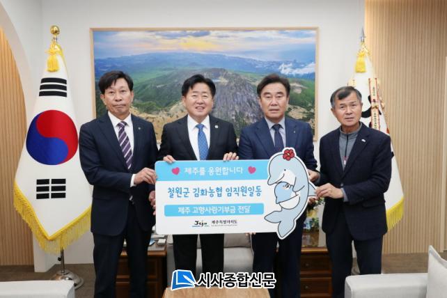 Á¦ÁÖÆ¯º°ÀÚÄ¡µµ´Â ±èȳóÇù(Á¶ÇÕÀå ÀåÃáÁý)ÀÌ 19ÀÏ ¿ÀÈÄ 5½Ã 30ºÐ µµÃ»À» ¹æ¹®ÇØ ¿À¿µÈÆ Áö»ç¿Í ¸é´ãÇϰí Á¦ÁÖ °íÇâ»ç¶û±âºÎ±ÝÀ» ±âŹÇÒ ¿¹Á¤À̶ó°í ¹àÇû´Ù.