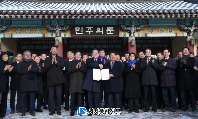 ÀÌ¿¡ µû¶ó ¾ç ½Ã‧µµ´Â À̹ø °øµ¿¼±¾ðÀ» ÅëÇØ ±¤ÁÖ‧Àü³² ÇàÁ¤ÅëÇÕÀ» ´õ ÀÌ»ó ¹Ì·çÁö ¾Ê°í Áï°¢ ÃßÁøÇϱâ·Î ÇÕÀÇÇß´Ù.