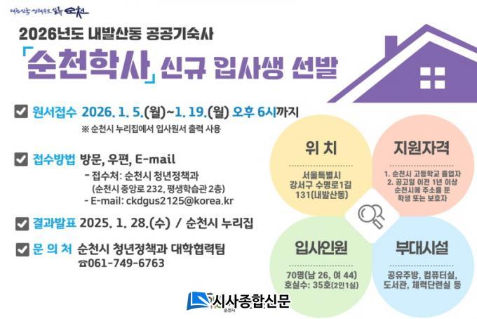 ±âŸ ÀÚ¼¼ÇÑ »çÇ×Àº ¼øÃµ½Ã û³âÁ¤Ã¥°ú ´ëÇÐÇù·ÂÆÀ(061-749-6763)À¸·Î ¹®ÀÇÇÏ¸é µÈ´Ù.