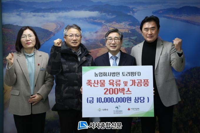 ³ªÁÖ½Ã(½ÃÀå À±º´ÅÂ)´Â Áö³´Þ 30ÀÏ ³ó¾÷ȸ»ç¹ýÀÎ Å丮ÆÊFD(´ëÇ¥ ÃÖ¿øÁØ)°¡ °ü³» Ãë¾à°èÃþ Áö¿øÀ» À§ÇØ »ï°ã»ì, ¸ñ»ì, ¾Õ´Ù¸´»ì µî Ãà»ê¹° °¡°øÇ° 200¹Ú½º(1õ¸¸ ¿ø »ó´ç)¸¦ ±âŹÇß´Ù°í 2ÀÏ ¹àÇû´Ù.