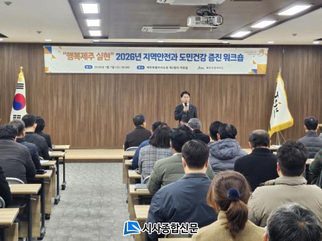 Á¶»ó¹ü Á¦ÁÖµµ ¾ÈÀü°Ç°½ÇÀåÀº ¡°À̹ø ¿öÅ©¼óÀ» ÅëÇØ Á¤ºÎ Á¤Ã¥°ú Á¦ÁÖµµÀÇ Àç³¾ÈÀü¡¤ÀÇ·á°Ç° Á¤Ã¥À» À¯±âÀûÀ¸·Î ¿¬°èÇØ µµ¹ÎÀÌ ½ÇÁ¦·Î ü°¨ÇÒ ¼ö ÀÖ´Â Á¤Ã¥À» ÃßÁøÇϰڴ١±¸ç ¡°¾ÕÀ¸·Îµµ µµ¿Í ÇàÁ¤½Ã, º¸°Ç¼Ò °£ Çù¾÷À» °ÈÇØ ¾ÈÀüÇÏ°í °Ç°ÇÑ ¡®ÇູÁ¦ÁÖ¡¯ ½ÇÇö¿¡ ÃÖ¼±À» ´ÙÇϰڴ١±°í ¸»Çß´Ù.