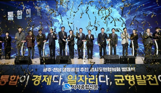 ±¤ÁÖ±¤¿ª½Ã(½ÃÀå °±âÁ¤)¿Í Àü¶ó³²µµ(Áö»ç ±è¿µ·Ï)´Â 16ÀÏ ¿ÀÈÄ 3½Ã ±è´ëÁßÄÁº¥¼Ç¼¾ÅÍ¿¡¼ ¡®±¤ÁÖ‧Àü³² ÇàÁ¤ÅëÇÕ ÃßÁø ¹ü½Ãµµ¹Î ÇùÀÇȸ¡¯ ¹ß´ë½ÄÀ» ¿°í, ´ëÇѹα¹ ÃÖÃÊÀÇ ÅëÇÕ ±¤¿ªÁö¹æÁ¤ºÎ ź»ýÀ» À§ÇÑ ½Ãµµ¹Î ¿ª·® °áÁý¿¡ ³ª¼¹´Ù.