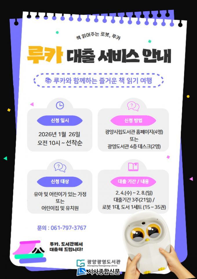±¤¾ç½Ã °ü°èÀÚ´Â ¡°Ã¥ ÀоîÁÖ´Â ·Îº¿ ·çÄ« µµ¼ ´ëÃâ ¼ºñ½º´Â À¯¾Æ¡¤¾î¸°À̸¦ À§ÇÑ ´ëÇ¥ÀûÀÎ µ¶¼ Áö¿ø »ç¾÷À¸·Î, ¾ÕÀ¸·Îµµ ¸Å³â »ó½Ã ¿î¿µÇØ ³ª°¥ ¿¹Á¤¡±À̶ó¸ç ¡°¸¹Àº °¡Á¤°ú º¸À°¡¤±³À° ±â°ü¿¡¼ Àû±ØÀûÀ¸·Î ÀÌ¿ëÇØ ¾î¸°ÀÌ µ¶¼ ¹®È È®»ê¿¡ ±â¿©ÇÏ±æ ¹Ù¶õ´Ù¡±°í ¸»Çß´Ù.