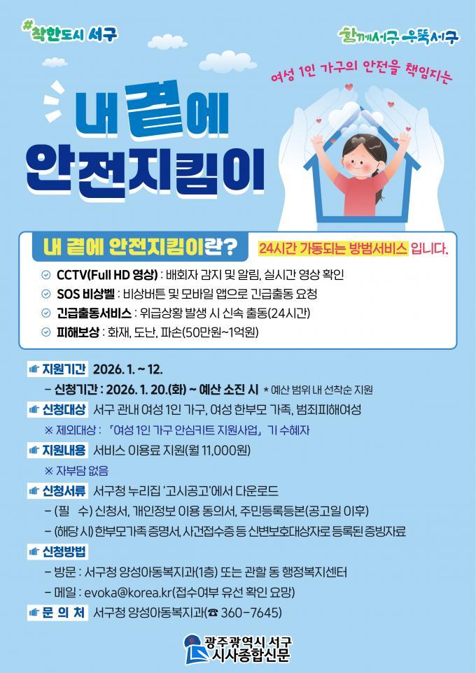 ÀÌ »ç¾÷Àº ¿©¼º 1ÀÎ °¡±¸, ¿©¼º ÇѺθ𠰡Á¤, ¹üÁËÇÇÇØ ¿©¼ºÀ» ´ë»óÀ¸·Î CCTV¡¤ºñ»óº§ ¼³Ä¡, ±ä±ÞÃ⵿ ¼ºñ½º µîÀ» ¿¬°èÇÑ »ýȰ¹ÐÂøÇü ÁְžÈÀü ¼ºñ½º´Ù.
