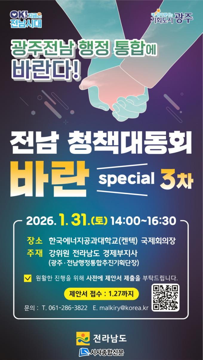 À̹ø Çà»ç´Â Áß´ëÇÑ Áö¿ª Çö¾ÈÀÎ ¡®±¤ÁÖ¡¤Àü³² ÇàÁ¤ÅëÇÕ¿¡ ¹Ù¶õ´Ù¡¯¸¦ ÁÖÁ¦·Î, ÅëÇÕ °ü·Ã ÁúÀÇÀÀ´ä(Q&A)À» ÅëÇØ Á¤º¸¸¦ °øÀ¯Çϰí ÅëÇÕ ÀÌÈÄ ¾î¶² µµ½Ã¸¦ ¸¸µé °ÍÀΰ¡¿¡ ´ëÇÑ ÀǰßÀ» Æø³Ð°Ô ¼ö·ÅÇϱâ À§ÇØ ¸¶·ÃµÆ´Ù. ±¤ÁÖ¡¤Àü³² 320¸¸ ÁÖ±ÇÀÚ°¡ ÅëÇÕµµ½ÃÀÇ ¼³°èÀÚ°¡ µÅ¾ß ÇÑ´Ù´Â ÃëÁö´Ù.