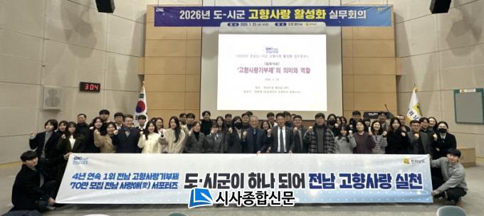 °°æ¹® Àü³²µµ °íÇâ»ç¶û°úÀåÀº ¡°°íÇâ»ç¶û±âºÎÁ¦¿Í Àü³² »ç¶û¾Ö ¼Æ÷ÅÍÁî´Â °¢°¢ Áß¿äÇÑ Á¤Ã¥ ¼ö´ÜÀÎ µ¿½Ã¿¡ µµ¿Í ½Ã±ºÀÌ ÇÔ²² ¿î¿µÇÒ ¶§ È¿°ú°¡ ±Ø´ëȵǴ Á¦µµ¡±¶ó¸ç ¡°°íÇâ»ç¶û±âºÎÁ¦ 4³â ¿¬¼Ó Àü±¹ 1À§, Àü³² »ç¶û¾Ö ¼Æ÷ÅÍÁî 70¸¸ ¸í ¸ðÁý ¸ñÇ¥ ´Þ¼ºÀ» À§ÇØ ½Ã±º°ú ÈûÀ» ¸ð¾Æ ±âºÎ Âü¿© È®´ë¿Í Áö¿ª Ȱ·Â Á¦°í·Î À̾îÁöµµ·Ï Çϰڴ١±°í ¸»Çß´Ù.