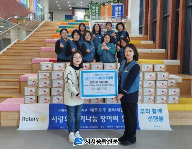 [½Ã»çÁ¾ÇսŹ® = °í¼º¹Î ±âÀÚ] ±¹Á¦·ÎŸ¸® 3662Áö±¸ Á¦ÁÖ¿ìÁÖ ·ÎŸ¸®Å¬·´(ȸÀå ä±Ý¼÷)Àº 1¿ù 24ÀÏ ¿ÀÀü 11½Ã, µ¿Á¦ÁÖÁ¾ÇÕ»çȸº¹Áö°ü(°üÀå ±èÁö¼±)¿¡ Áö¿ª Ãë¾à°èÃþ ¾î¸£½ÅµéÀ» À§ÇÑ ¡®»ç¶ûÀÇ ¿Â±â³ª´® À徯Âî ¼¼Æ®¡¯ ÈÄ¿ø¹°Ç°À» Àü´ÞÇß´Ù.