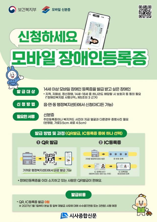 ICĨÀÌ Å¾ÀçµÈ ½Å±Ô Àå¾ÖÀεî·ÏÁõ ¼ÒÁöÀÚ´Â ¡®´ëÇѹα¹ ¸ð¹ÙÀÏ ½ÅºÐÁõ¡¯ ¾ÖÇø®ÄÉÀ̼ÇÀ» ÅëÇØ ½º¸¶Æ®Æù ÅÂ±ë ¹æ½ÄÀ¸·Î °£ÆíÇÏ°Ô µî·ÏÇÒ ¼ö ÀÖÀ¸³ª, ±âÁ¸ ½Ç¹° Àå¾ÖÀεî·ÏÁõ ¼ÒÁöÀÚ´Â °¡±î¿î À¾¡¤¸é¡¤µ¿ ÇàÁ¤º¹Áö¼¾Å͸¦ ¹æ¹®ÇØ Á¤º¸ÀνĺÎÈ£(QRÄÚµå) ÀÎÁõ ÀýÂ÷¸¦ °ÅÃÄ¾ß ¹ß±Þ¹ÞÀ» ¼ö ÀÖ´Ù.
