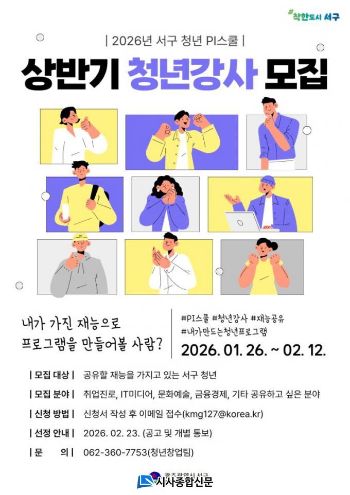 ¸ðÁý ±â°£Àº ¿À´Â 2¿ù12ÀϱîÁöÀ̸ç Âü¿©¸¦ Èñ¸ÁÇϴ û³âÀº ¼±¸Ã» ´©¸®Áý °í½Ã°ø°í¶õÀÇ °ü·Ã ¼·ù¸¦ ÁغñÇØ ÀüÀÚ¿ìÆí(kmg127@korea.kr)À¸·Î Á¦ÃâÇÏ¸é µÈ´Ù. ÀÚ¼¼ÇÑ ³»¿ëÀº ¼±¸Ã» ÀÏÀÚ¸®Ã»³âÁö¿ø°ú(062-360-7753)·Î ¹®ÀÇÇÏ¸é µÈ´Ù.